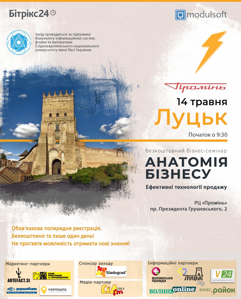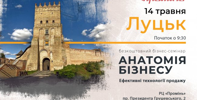14 травня у Луцьку у РЦ “Промінь” відбудеться безкоштовний семінар «Анатомія бізнесу». Про це повідомляють організатори дійства. “Не проґавте можливість отримати нові знання. Лише діючі інструменти […]