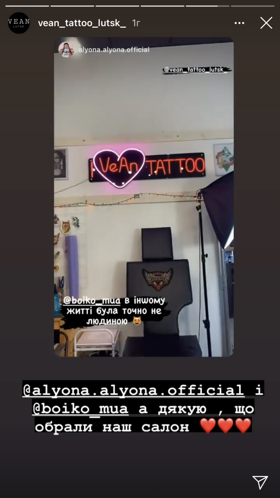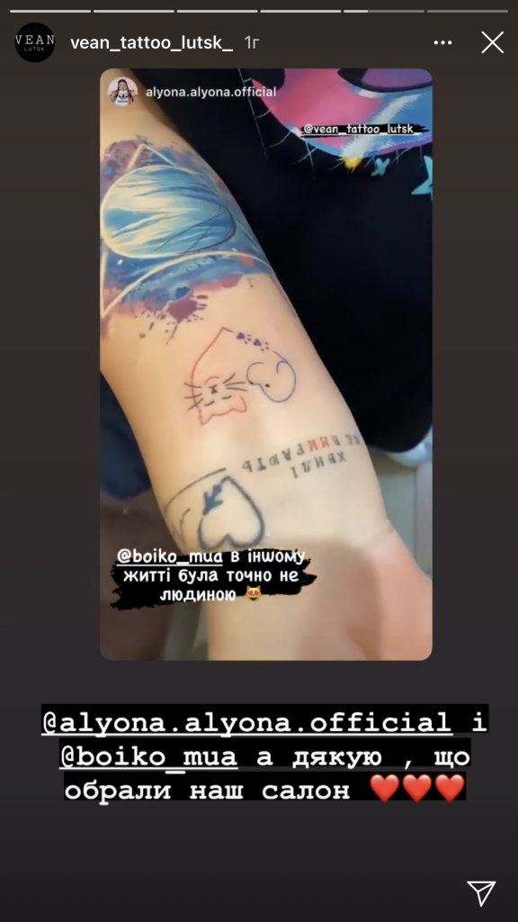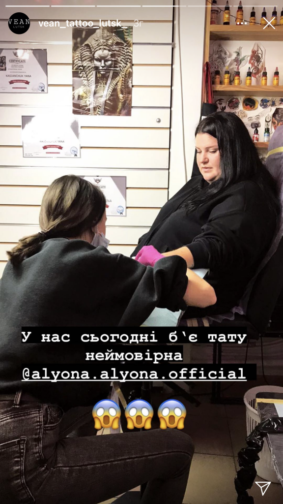 Сьогодні популярна співачка зі своїм візажистом побувала у тату-салоні VeAn Tattoo, де вони зробили собі татуювання. Відео Alyona Alyona опублікувала на своєму акаунті в Instagram.