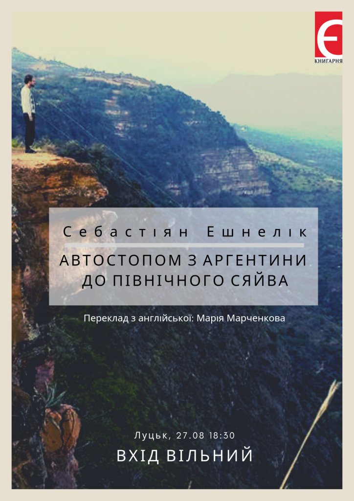 Книгарня «Є» запрошує поспілкуватися з поетом і мандрівником з Аргентини Себастіяном Ешнеліком на черговій зустрічі в рамках проекту «Мандри». Захід відбудеться 27 серпня. Початок – о 18:30. Перекладає з англійської Марія Марченкова.
