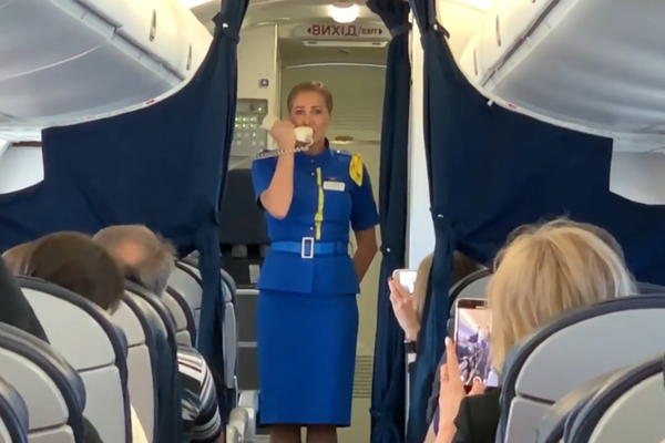 Пасажирам дарували синьо-жовті прапорці. Авіакомпанія розмістила відео акції в своєму Facebook.