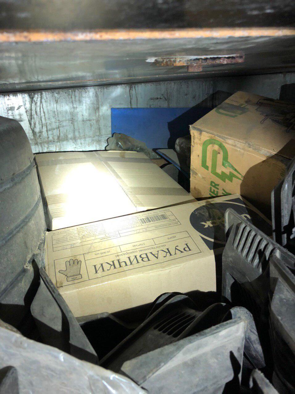 В іншому, спільна міжвідомча оглядова група серед вантажу «дерев’яні палети» виявила ще 40 тисяч штук таких рукавиць.