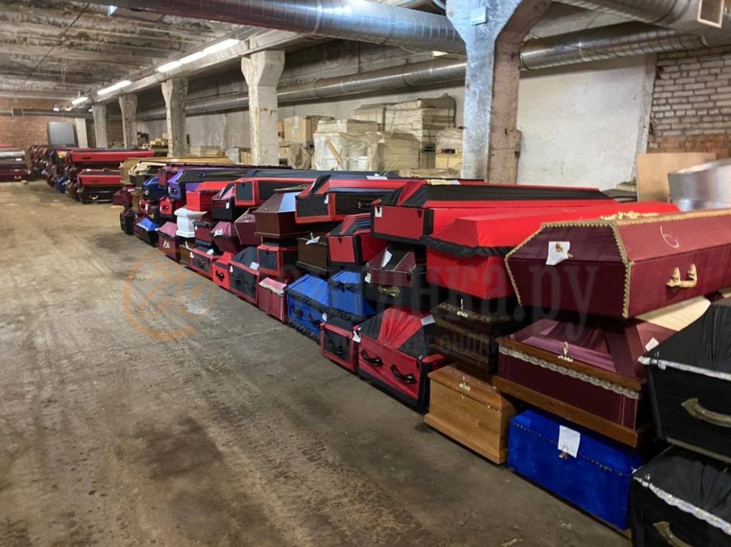 За його словами, частина трун, які очікують своєї черги, склали на цокольному поверсі. За його підрахунками, їх близько трьохсот, включаючи ящики з дощок, в які кладуть тих померлих, чиї похорони проходять коштом держави.