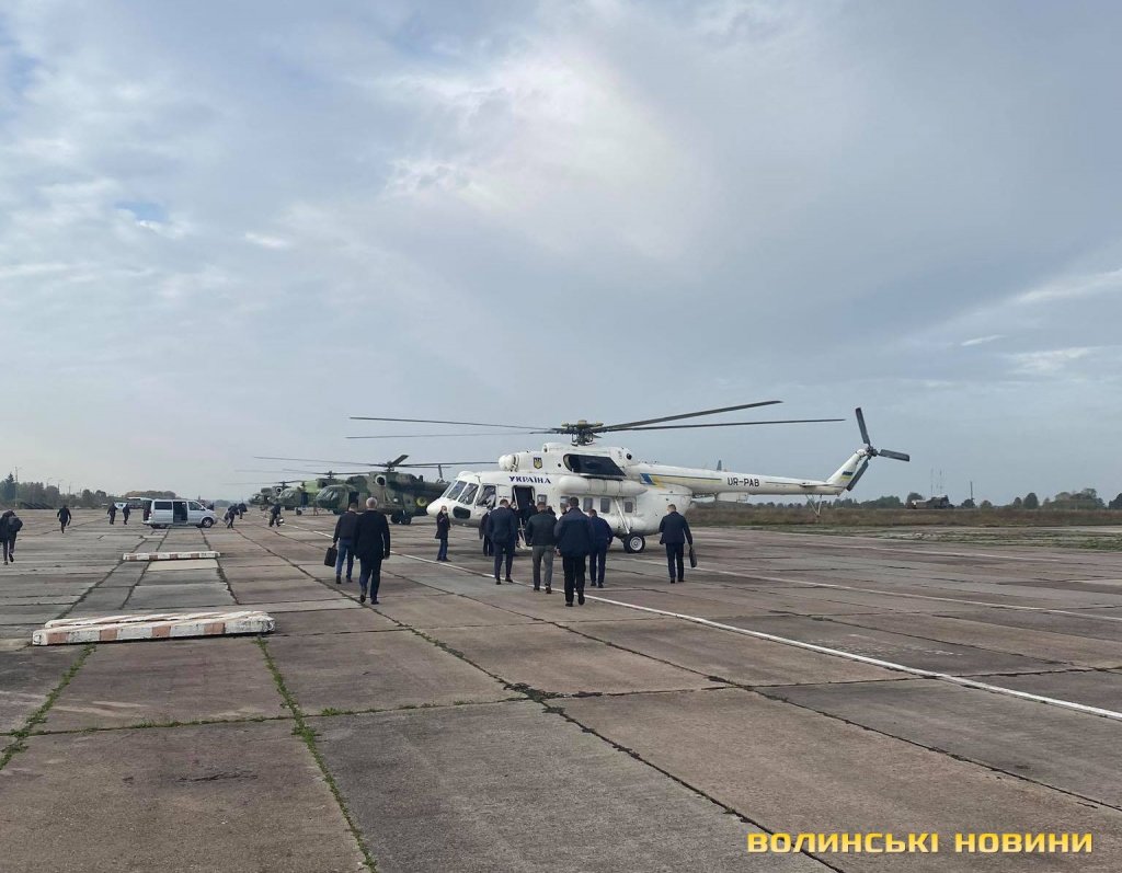 Літак приземлився близько 10 години ранку, хоча очікували його з 9. Відомо, що президента зустрічали представники місцевої влади. Тут Зеленський та учасники поїздки пересіли у три вертольоти Мі-8, які прибули до Луцька ще вчора та вилетіли на Ковель.