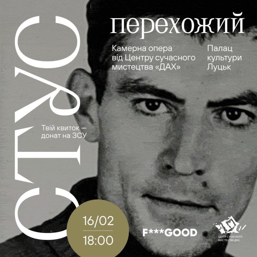 У Палаці культури Київський Центр сучасного мистецтва «ДАХ» презентуватиме камерну оперу «Стус: Перехожий» за творами цього незабутнього автора на ім’я Василь.