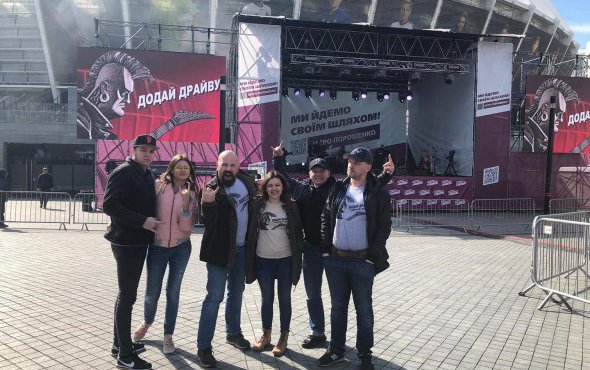 На сцені висить банер “Ми йдемо своїм шляхом. Петро Порошенко”.