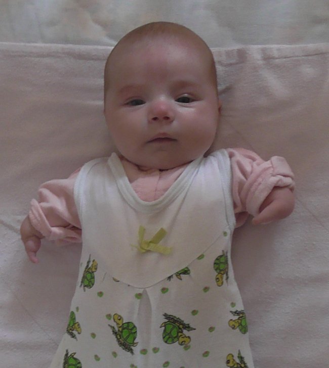 Марійка (3 місяці) – дівчинка з особливим потребами, ще зовсім маленька. Їй необхідна турбота і любов, постійна увага з боку дорослих. Посміхається, привітно йде на руки, реагує на ласку і увагу до неї. Малечі дуже потрібні люблячі і турботливі мама і тато, які радітимуть розвитку і успіхам своєї донечки.