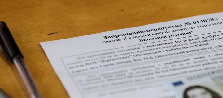 Приглашение-пропуск для участия во внешнем независимом оценивании по математике, в специализированной школе № 194 "Перспектива", в Киеве, 22 мая 2018 г. В этот день в столице началась основная сессия внешнего независимого оценивания (ВНО). В этом году программу проведения внешнего оценивания открыл тест по математике. Фото Ратынский Вячеслав / УНИАН