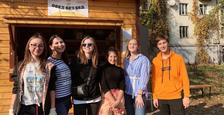 На сторінці школи у Facebook повідомляється, що в суботу школярі допомагали «приготувати смачненьке та роздати літнім людям в будиночках проєкту «Обід без бід».