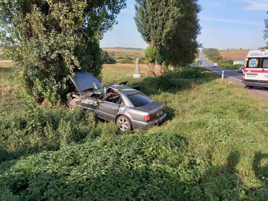За попередніми даними, Ауді сірого кольору зіткнулася з автомобілем комунального підприємства міста, а потім влетіла в дерево.