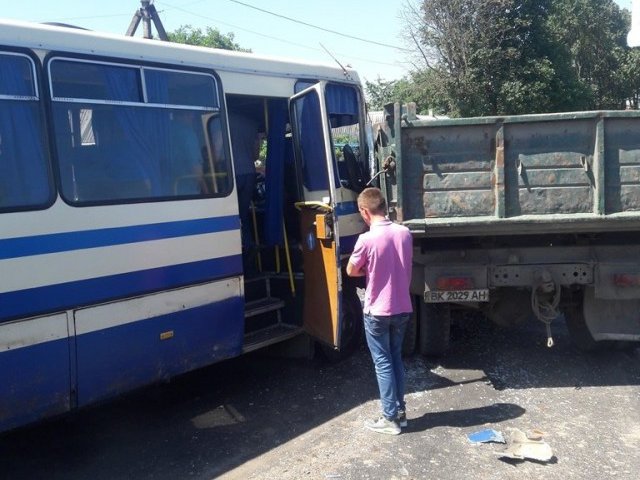 Удар прийшовся правою частиною автобуса в борт кузова вантажівки, машина зазнала механічних ушкоджень. Інформації про постраждалих немає.