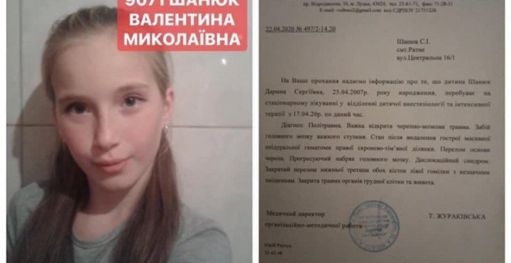 Дарина Шанюк із Ратного, яка на початку квітня 2020 року потрапила у аварію, потребує дороговартісного лікування, аби вижити. Про це повідомила Віта Шевчук у соцмережі, передає Район.Рожище.