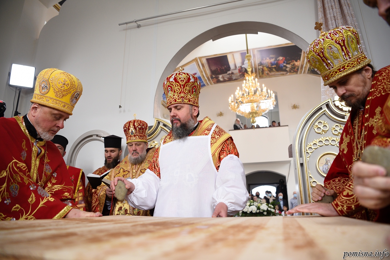 Предстоятелю Православної Церкви України співслужили митрополит Івано-Франківський і Галицький Іоасаф, архієпископ Тернопільський і Кременецький Нестор, архієпископ Вишгородський Агапіт, єпископ Хмельницький і Кам’янець-Подільський Павло, єпископ Шепетівський Адріан, настоятель храму протоієрей Вадим Якімов та запрошене духовенство.