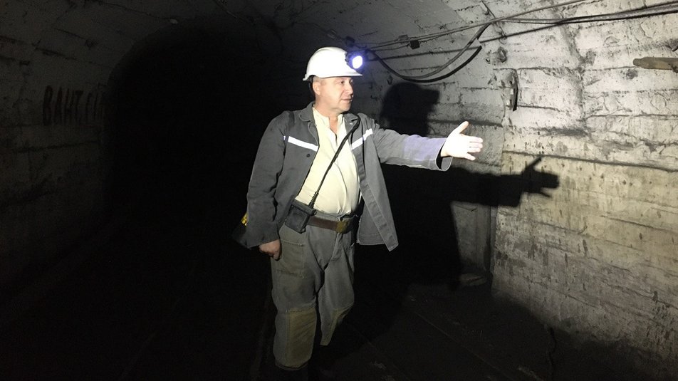Під землею гірники щодня долають понад кілометр до місця видобутку вугілля, розповідає начальник дільниці Роман Козловський. У лаві він та його колеги пересуваються навколішки усю шестигодинну зміну.