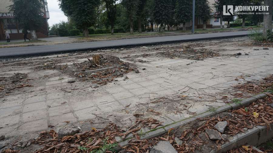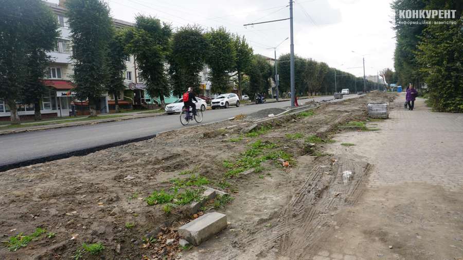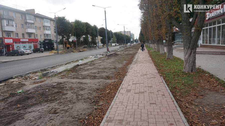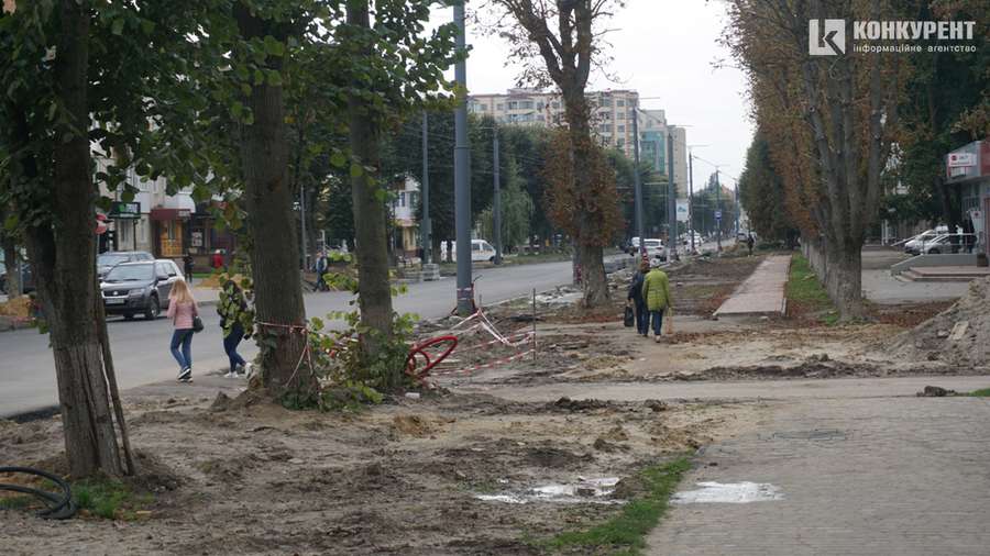 Чимало роботи слід виконати й на тротуарах. Більшість з них ще не викладені бруківкою. Також в результаті ремонтних робіт на узбіччях проспекту накопилося чимало будівельного сміття.