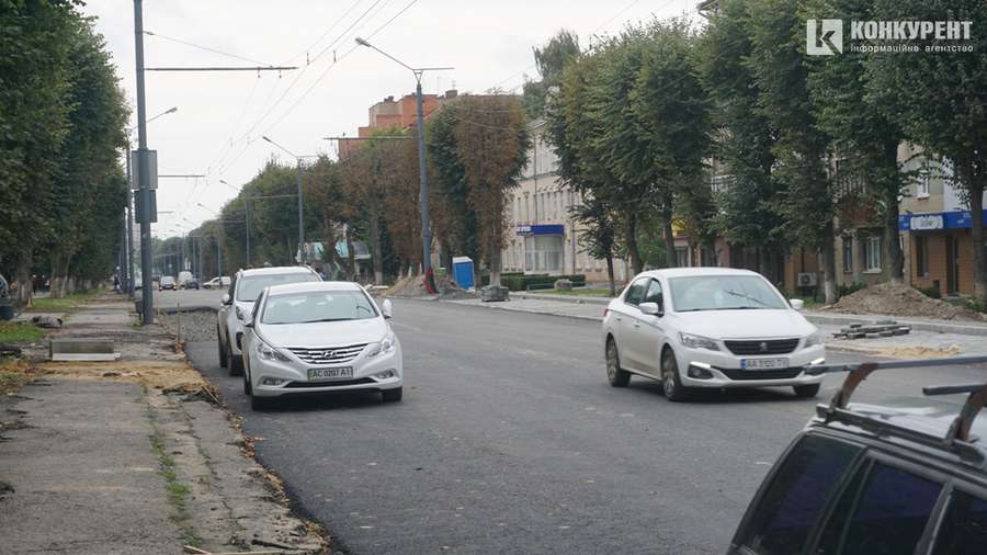 Не дивлячись на відсутність дорожніх розміток, автомобілі можуть потрапити на проспект Волі. Рух наразі ніяк не врегульований. На проїжджій частині одночачно можна побачити і автомобільний транспорт, і дітей на самокатах, і пішоходів, і будівельників.