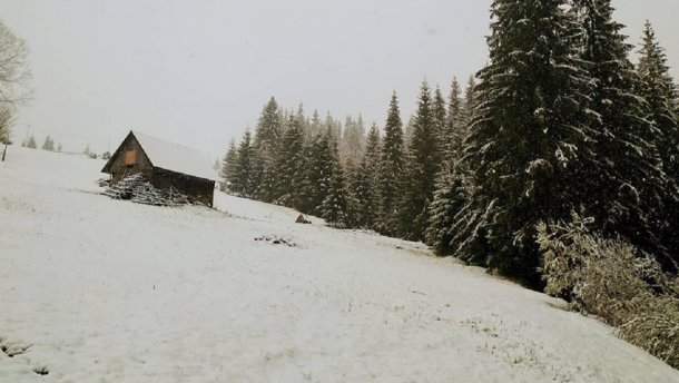 В Івано-Франківській області у Верховинському районі випав сніг.