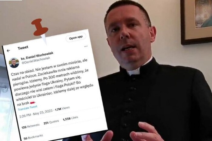 «Настав час обіду. Я не у своєму місті, але все ще в Польщі. Мене заінтригувала реклама вареників. Йду. Через 300 метрів бачу, що майорить лише прапор України. Я запитую себе, чому не майорить польський прапор? Тому що власник українець», – написав він. Священник додав, що через відсутність польського прапора відмовився заходити до приміщення.
