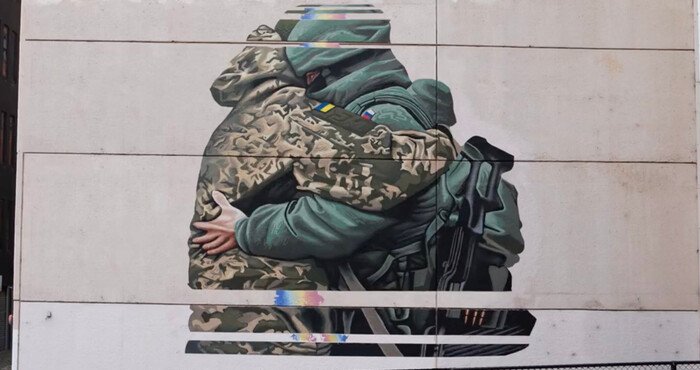 Відомий китайський художник та антикомуністичний карикатурист Бадіукао «виправив» мурал у Мельбурні, на якому зображені обійми військового Збройних сил України та загарбницької армії Росії. Художник заявив, що багато австралійських художників досі вважають, що в Україні нібито триває війна між народами. Про це митець написав на своїй сторінці у Twitter.