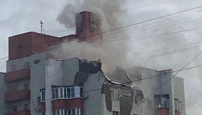 Уламки пошкодили кілька автомобілів, припаркованих біля багатоповерхівки. Про жертв поки не повідомляється.