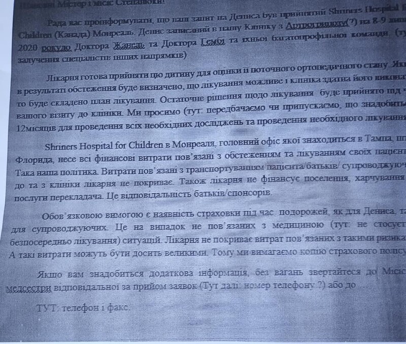 «В умовах сказано, що лікування буде безкоштовним, але переліт, страхування, проживання, послуги перекладача – за рахунок батьків. П’ять років батьки обходилися своїми силами, але зараз фінансове становище не дозволяє їм самим справитися», – пише Наталія Єпіфанович.