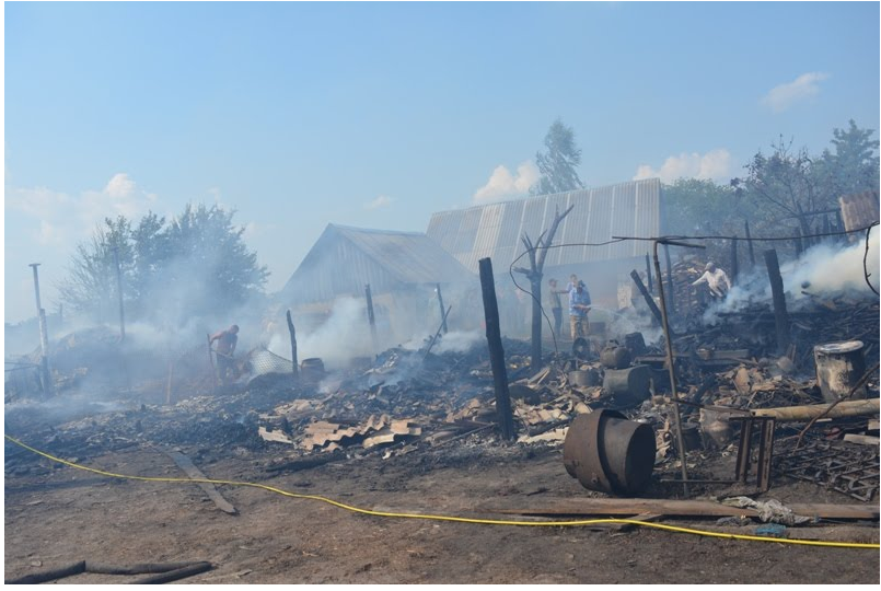 поінформував: «Сталася пожежа в господарській будівлі, через сильний вітер швидко розповсюдилося полум’я, яке після першої будівлі схопило другу. В ній було сіно та багато будівельних матеріалів, через це вогонь розповсюдився досить швидко. Одна пожежна машина не справлялася, залучили допоміжні сили, направили два резервні ходи, лісгоспівську машину. І лише тоді вдалося збити полум’я з допомогою населення. Причина загорання буде встановлюватися, цим займається поліція».