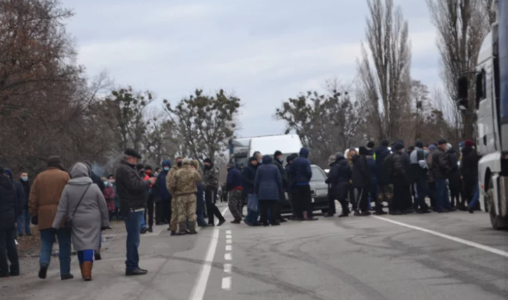 Мітинг на проїжджій частині учасники протесту влаштували сьогодні вранці, 10 січня, в районі населеного пункту Високий.