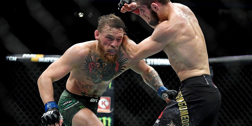 Перемігши, Хабіб почав згадувати Конору і його команді усе сказане перед боєм. Спершу він збирався добивати вже переможеного суперника, але потім почув щось неприємне з-за сітки, кинув у тому напрямі кляпом і прудко, немов молода вівця через гірський потічок, перестрибнув через огородження, збираючись побити когось із тренерів ірландця.