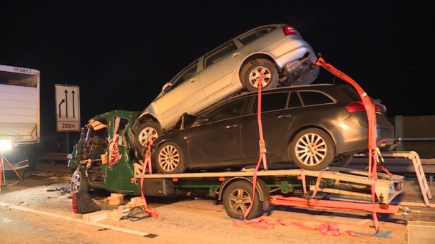 Близько 2:30 ранку водій фургона, навантаженого автомобілями, в’їхав у затор на трасі A10 між Рюдерсдорфом та Еркнером у напрямку до Шрее Дреєк у Німеччині.