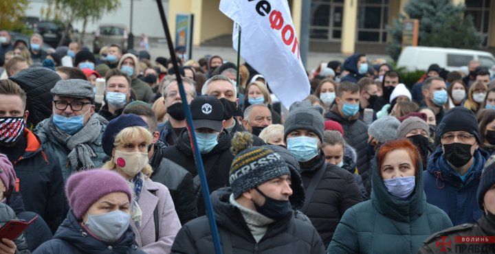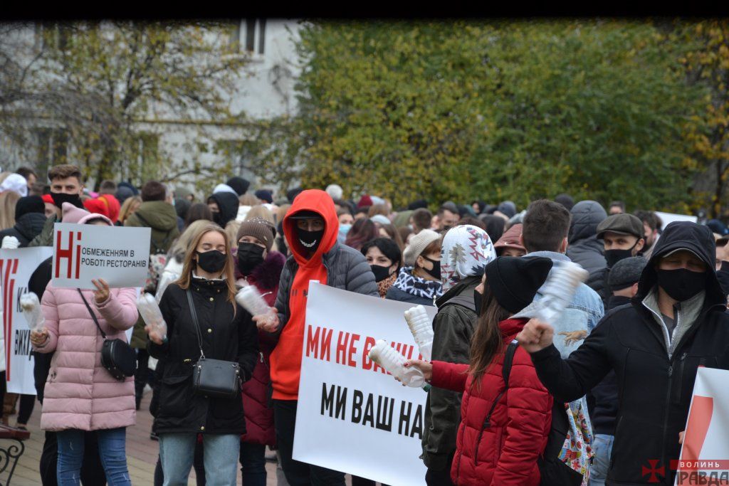 «Ми не ваші вороги»: під Волинською ОДА пікетують проти закриття закладів (ФОТО)