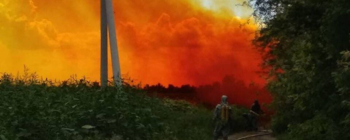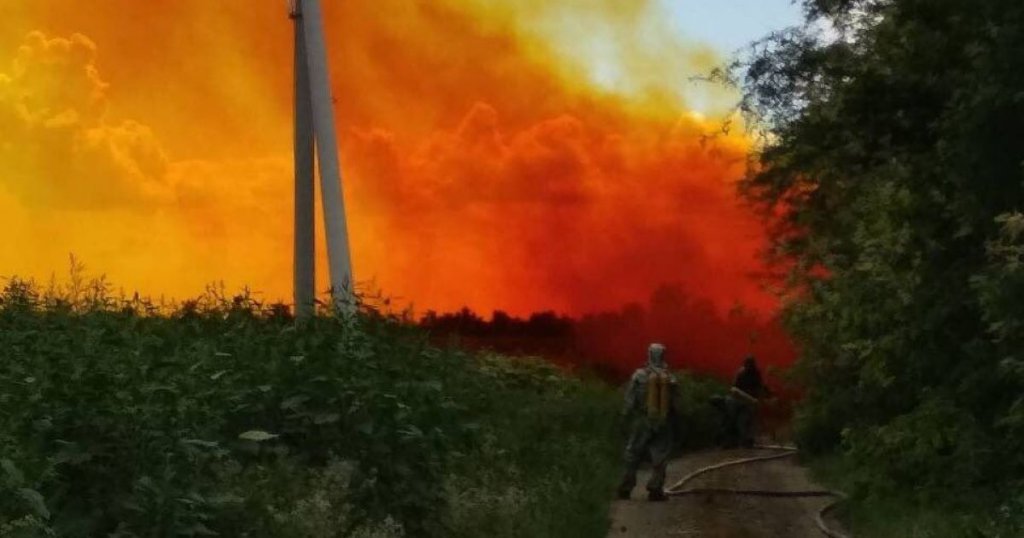 “Кількість азотної кислоти, що витекла, становить близько 3–4 т на площі 40–45 м²”, – зазначили у ДСНС. На фото і відео з місця подій видно характерну для випаровування азотної кислоти жовтувату хмару.