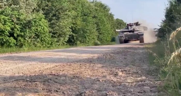 На відео один із танків Challenger на великій швидкості промчав дорогою повз групу наших військових.
