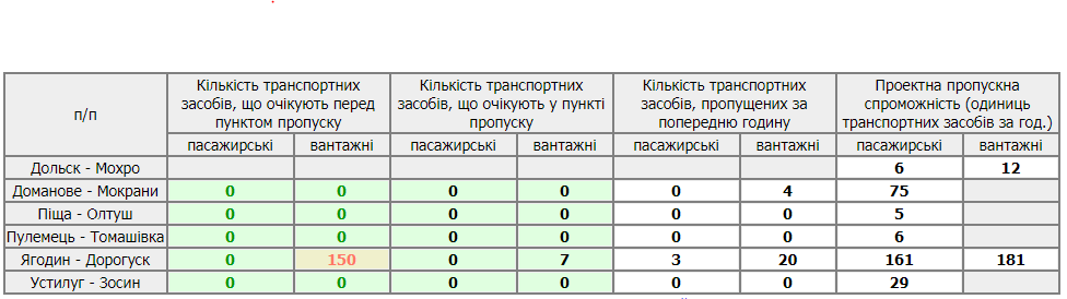 Перед пунктом пропуску “Ягодин” станом на ранок перебуває 150 вантажних транстортних засобів, які очікують в’їзду на територію Польщі.