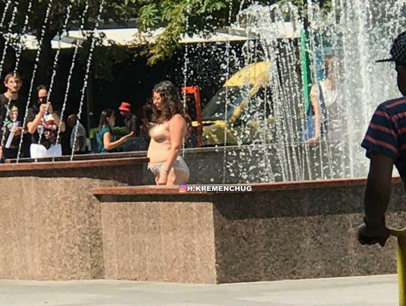 Жінка просто на очах у містян  посеред дня зняла з себе одяг та залізла у фонтан
