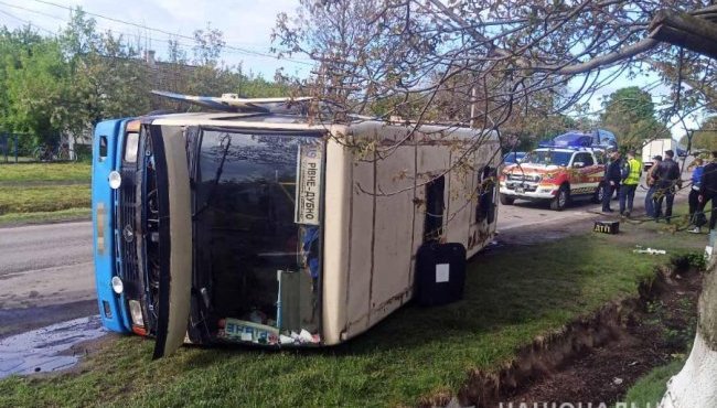 Внаслідок автопригоди до лікарні доставили чотирьох пасажирів. Їх стан наразі оцінюють медики. Всього у салоні автобуса перебувало орієнтовно 20 осіб.