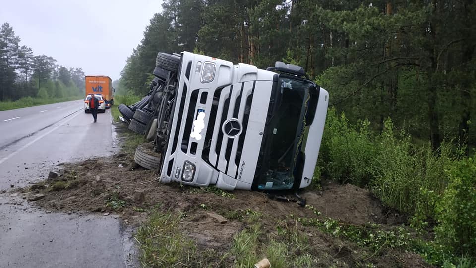 Після прибуття на місце виклику бійців 8-ї державної пожежно-рятувальної частини міста Сарни побачили перекинутий в кювет вантажний автомобіль марки Mersedes-Benz з причіпом Krone Profi. Автомобіль перевозив металеві труби вагою приблизно 20 т. Водій вантажівки не постраждав і від госпіталізації відмовився.