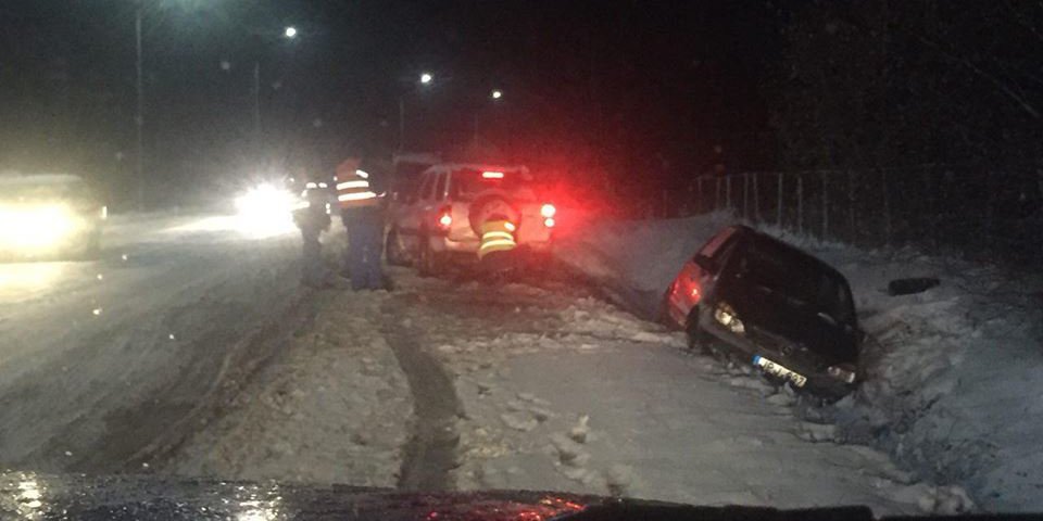 Завдяки професійним водійським навичкам інспекторів, службовому автомобілю Isuzu і небайдужим громадянам легковик витягли на трасу.