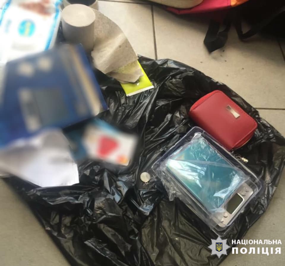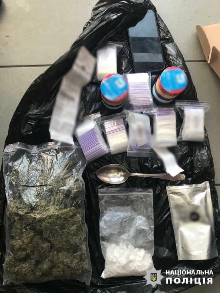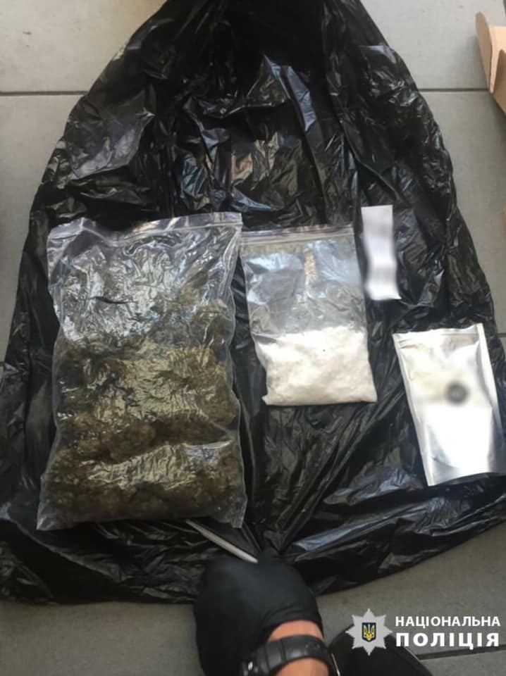 У їхніх рюкзаках виявили та вилучили поліетиленовий пакет з речовиною білого кольору, схожою на амфетамін вагою понад 100 грамів, поліетиленовий пакет з речовиною зеленого кольору, схожою на канабіс вагою понад 100 грамів, поліетиленові пакети та плівки для пакування наркотичних речовин у «закладки», електронні ваги, мобільні телефони тощо.