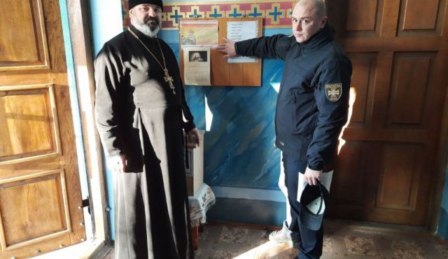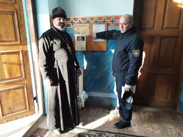 Під час інструктажу співробітники ДСНС оглянули протипожежний стан культової споруди та вручили листівки з правил пожежної безпеки та порядку дій на випадок надзвичайних ситуацій у релігійних закладах.
