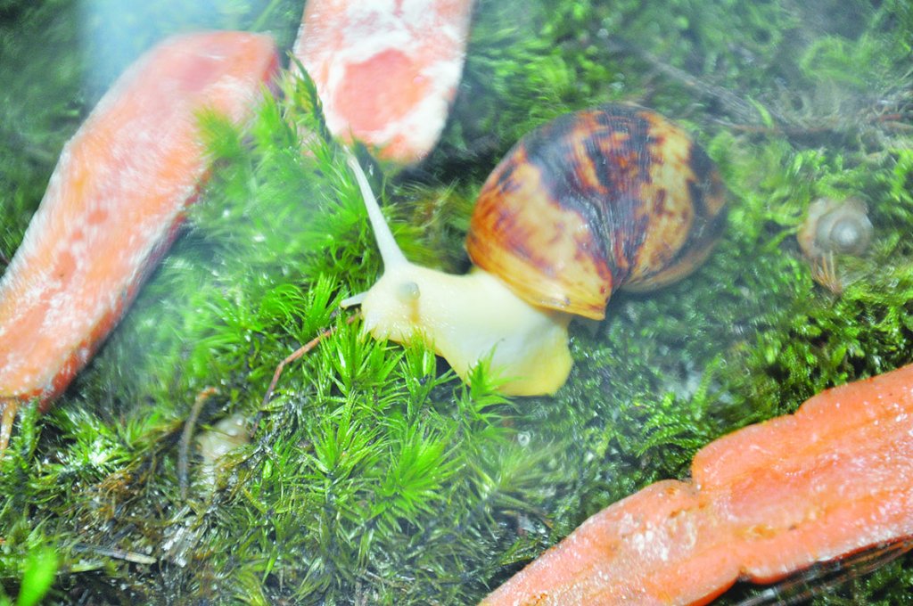 Молодий викладач звертає увагу й на ахатинських равликів, яким також потрібне кальційоване харчування для росту і зміцнення мушлі. До речі, мешкають тут равлики у тераріумі, дизайн котрого створили власноруч із врахуванням усіх аспектів (субстрат, температурний режим, вологість, освітлення), але не гірше, аніж на замовлення спеціалістів.