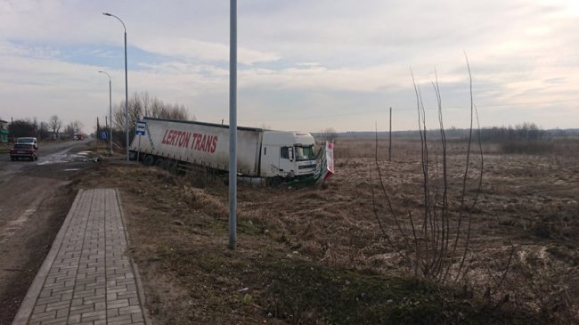 У Турійську сталася аварія на участю легковика та вантажівки, під час якої фура знесла зупинку.
