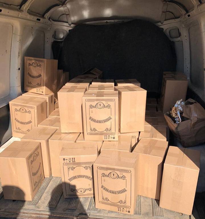 У ході огляду автомобіля марки “Фольксваген Кадді» виявлено та вилучено 52 ящики, заповнені полімерними пакетами із спиртовмісними речовинами, об’ємом 500 л.