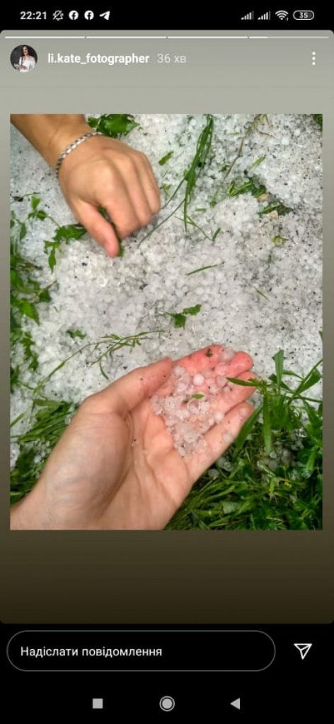 Над Горохівщиною 11 серпня пронеслася гроза з градом. Зокрема, град випав у селі Мирне. Фото опублікувала у соцмережі Instagram місцева жителька, пише Район.Горохів.