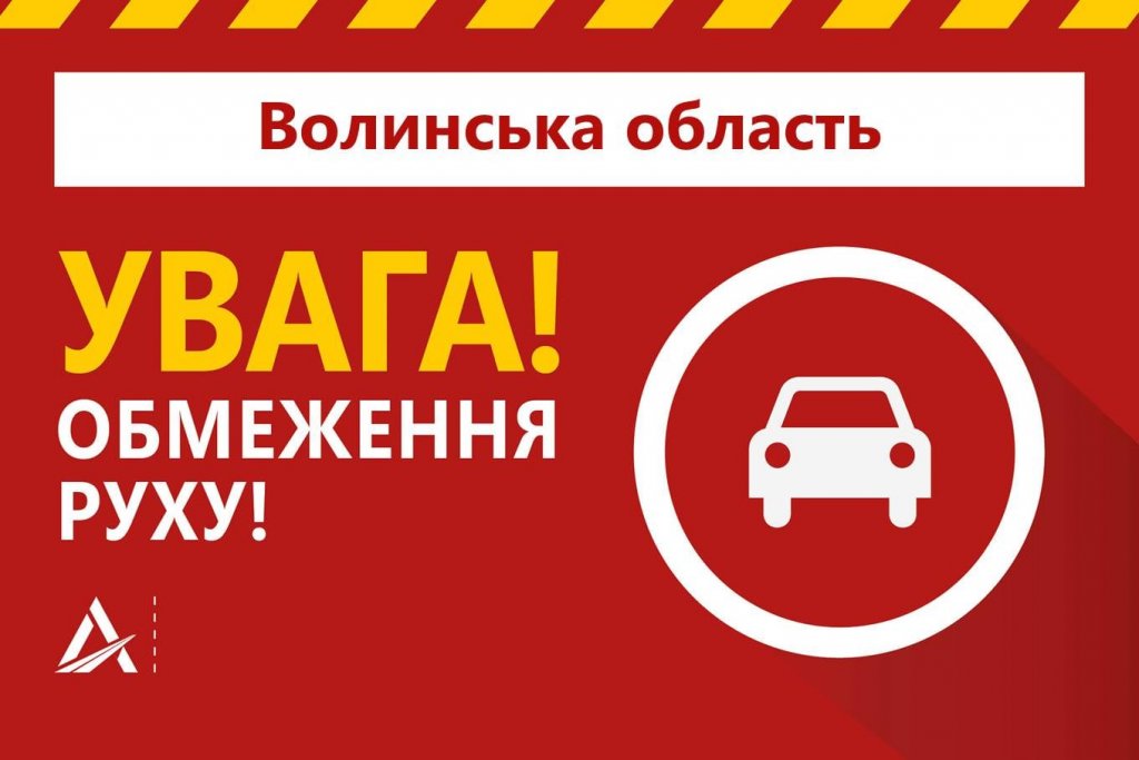 З 11.00 години 08 лютого 2021 року забороняється рух великовагових та великогабаритних транспортних засобів на автомобільних дорогах державного значення Волині: