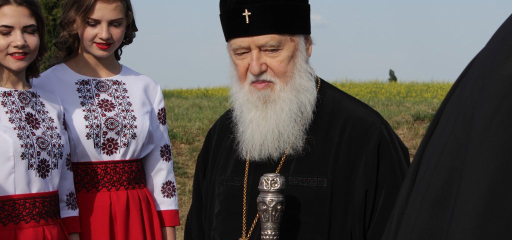 Зустріли Святішого представники міської влади біля в’їздного знаку до міста. Там патріарху Філарету вручили коровай.