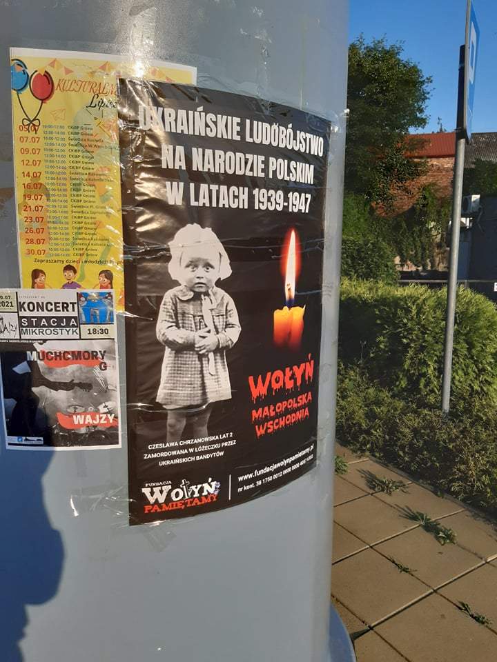 Фонд Wołyń Pamiętamy, відомий своєю антиукраїнською позицією, провів інформаційну кампанію на честь так званої «Волинської різанини». Активісти видрукували понад 12 тисяч плакатів та розмістили їх по території всієї Польщі, де назвали українців «вбивцями польського народу».