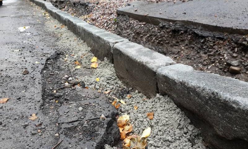 «Двір на Соборності, 22а почали ремонтувати наприкінці осені 2017-го. Асфальт зняли, частково поклали тротуарну плитку біля будинків ще до снігу і роботи закінчились. Техніку забрали і робітники не з’являлись більше», – повідомляє Григір Дубинка.