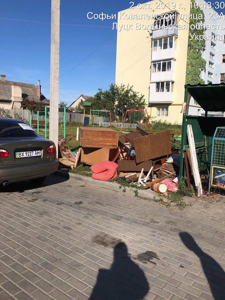 За засмічення прилеглої до будинку території дерев’яними конструкціями (віконні рами, меблі і т.п.) на порушника складено протокол про адміністративне правопорушення та зобов’язано прибрати після себе.