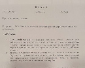 Викладачка хореографії з Обухова Київської обл. Оксана Саяпіна написала у Facebook, що вчить дітей російською, та отримала за це догану. Передає Gazeta.ua.