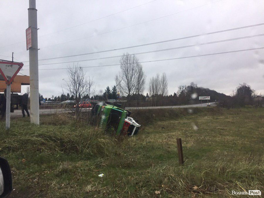 У селі під Луцьком евакуатор з машиною злетіли у кювет
