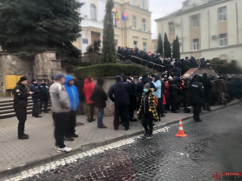 Вранці, 5 лютого, Луцькраду оточили підприємці луцького ринку, яким вночі працівники департаменту муніципальної варти знесли контейнери. Про це «Волинь.Правді» стало з власних джерел.